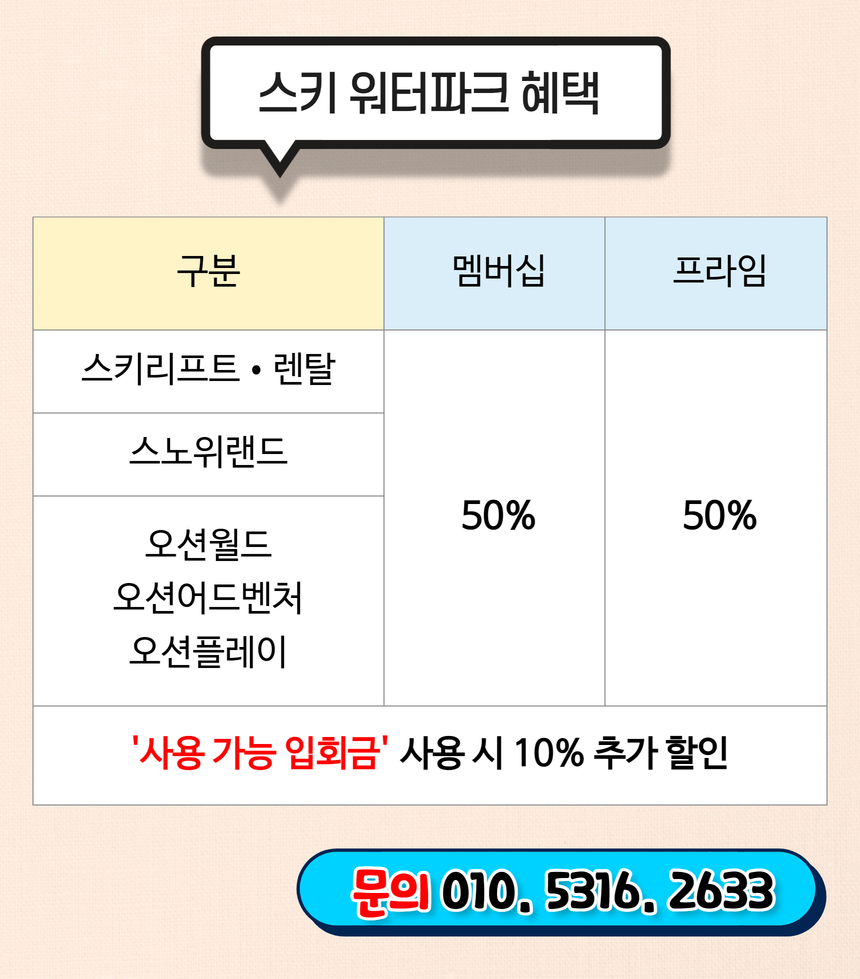 골프, 승마, 요트 클럽 등 다양한 레저 활동을 즐길 수 있으며, 스키장과 워터파크에서도 최대 60%의 할인 혜택을 누릴 수 있습니다. 특히 골프의 경우, 기본 할인 외에도 추가 할인 혜택이 제공되어 더욱 경제적으로 즐길 수 있습니다.